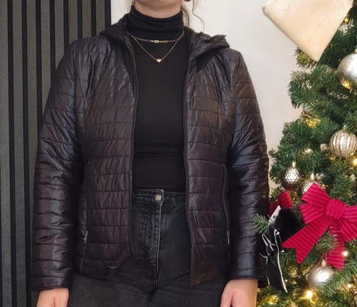 Giubbotto 100g nero con cintura e cappuccio